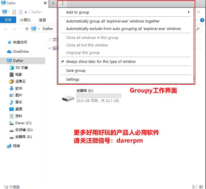 Groupy可以帮助把Windows桌面上的多个软件整合到一个窗口,就如同浏览器的标签页一样。