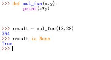 return,函数中一定要有return返回值才是完整的函数, 如果你没有定义Python 函数返回值,那么得到一个结果是None对象, 而None表示没有任何值