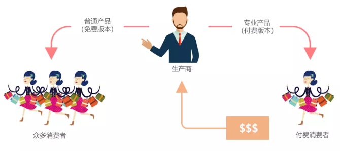 这个在工具类产品或者B端产品中最常见,付费提高专业版或者豪华版。